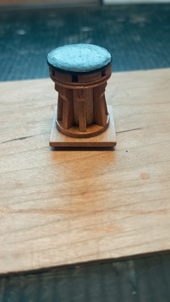 Morgen mache ich den Spakenring fertig und passe alles an. Ob ich das Spill blank lasse oder zumindest die Kopfabdeckung schwarz mache weiß ich noch nicht. Mir würde es als komplettes Blankholz-spill gefallen, allerdings weiß ich nicht ob die Kopfabdeckung tatsächlich immer schwarz war. Ich nehme mal an dass diese damals aus Blech oder ähnliches war und wahrscheinlich war sie wirklich schwarz. Mal sehen....