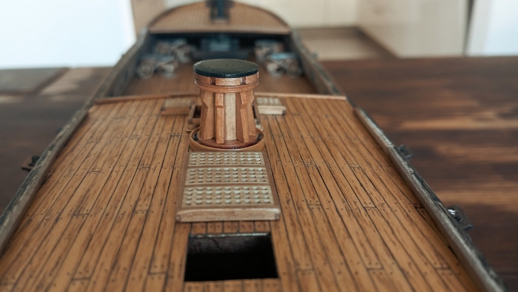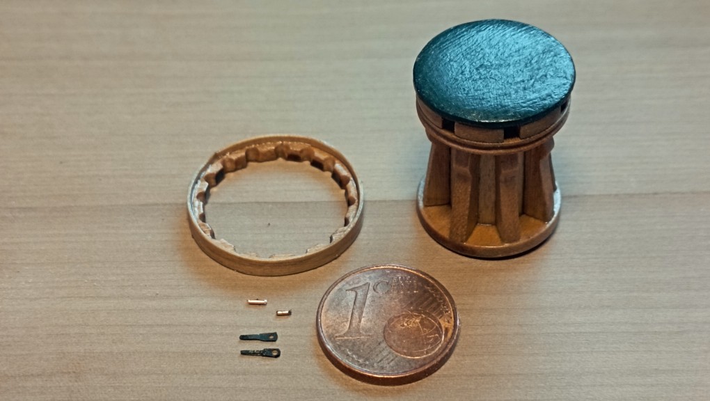 Da mir das Holz bzw die sichtbaren Kanten des im Baukasten befindlichen Holzes nicht zusagt, möchte ich gerne einen Versuch wagen, das Gangspill am hinteren Oberdeck selbst anzufertigen. Grundmaterial ist Birne.