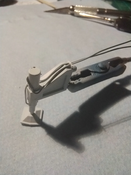 so,nun heute habe ich mal mit der Lackierung der ersten Teile begonnen und zwar habe ich die mit Leitungen versehenen Stützen zuerst grundiert.