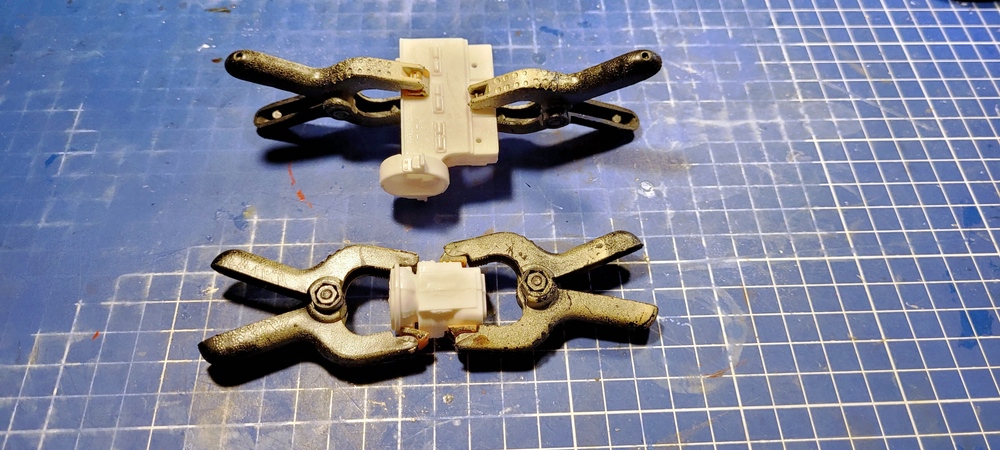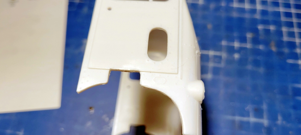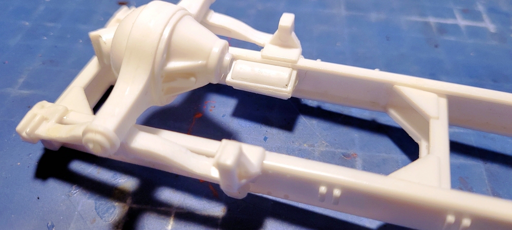 Gestern habe ich erst mal die Klebenaht an der Hinterachse verschliffen, die erstaunlich gut zusammen gepasst hat.