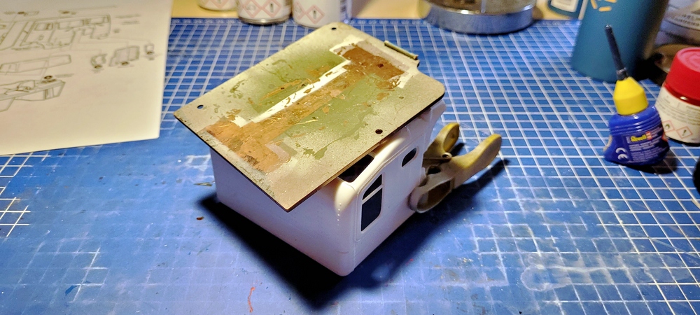 Jetzt nur noch eine Stellprobe von Fahrgestell und Kabine, nun sieht man auch besser wie sich das dann mal zusammen fügt.