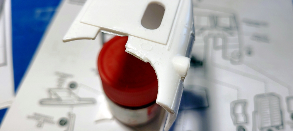 Dann sollte es schon mal mit der Kabine weiter gehen, da sie noch mein Sorgenkind ist und hier kam dann auch gleich die erste Schwierigkeit auf mich zu, ein dicker fetter Anguß der auch noch in eine Rundung sitzt.