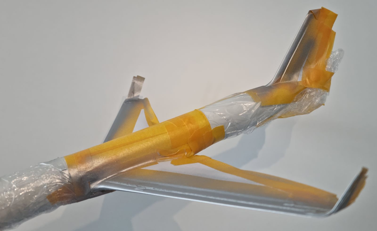 Die Öffnungen für Triebwerke und Höhenflossen habe ich mit liquid mask verschlossen.