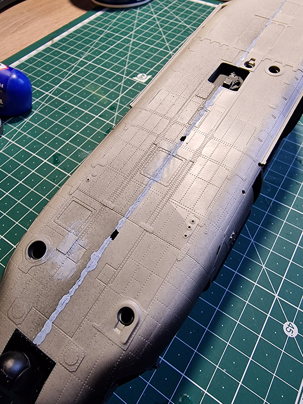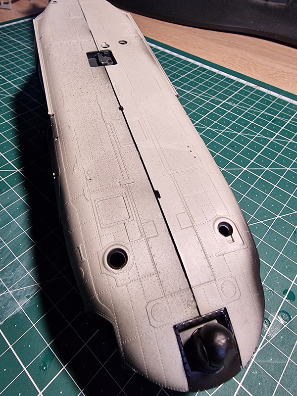 Nach dem Foto habe ich dann den verbliebenen Spalt der Rumpfhälften mit extra dünnflüssigem Putti verschlossen.