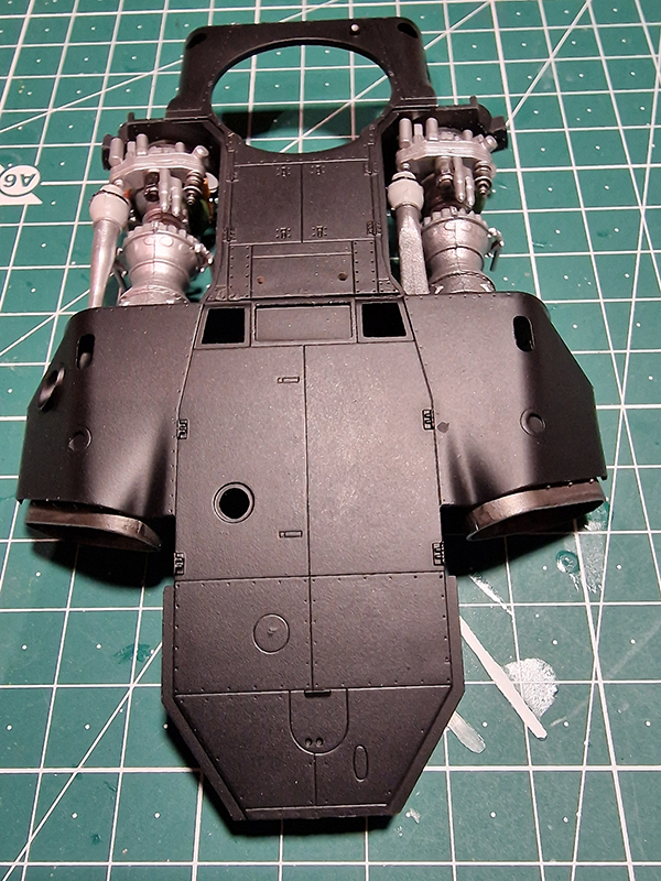 nachdem der Rumpf nun um Cockpit und Kabine geschlossen war, habe ich mit den Triebwerken begonnen.