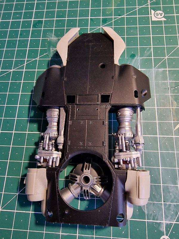 Zuerst die Turbinen zusammen gebaut, grundiert und lackiert.