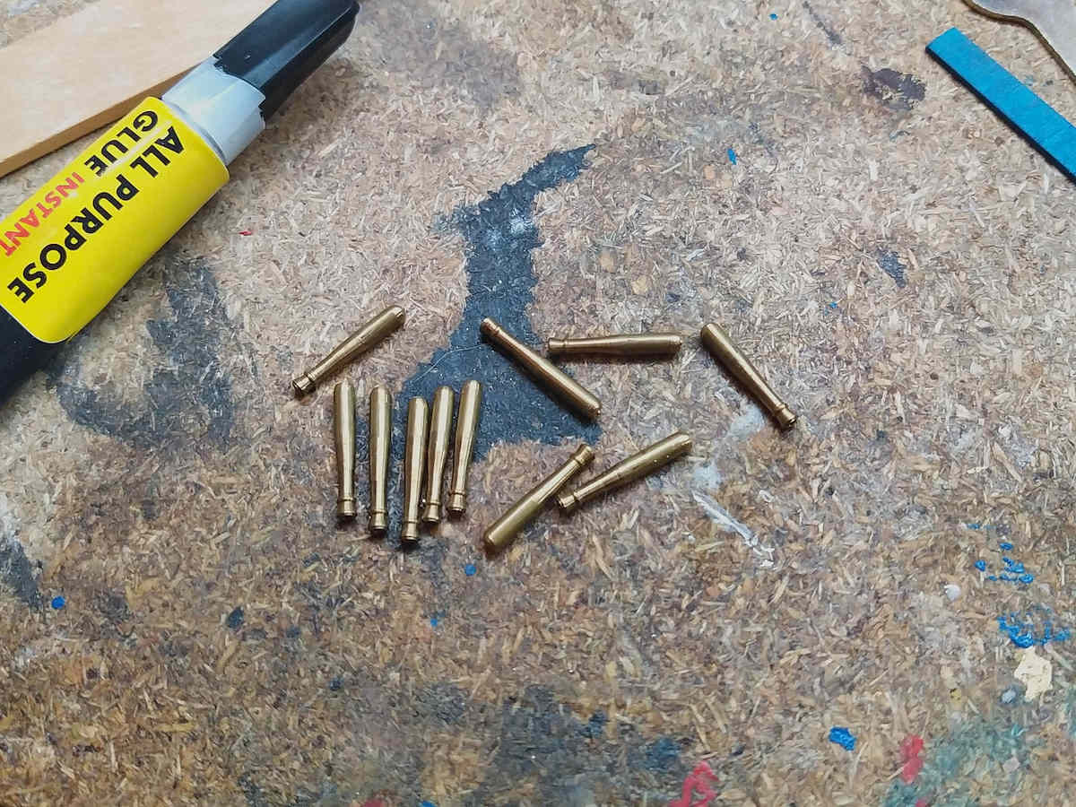 Aber egal mit genug Uhu Hart habe ich die Rohre schließlich alle einigermaßen mittig ausgerichtet bekommen...naja bis auf das erste am Bug. Da war das Loch so tief im Rumpf, dass das Kanonenrohr zu kurz zum Einstecken war