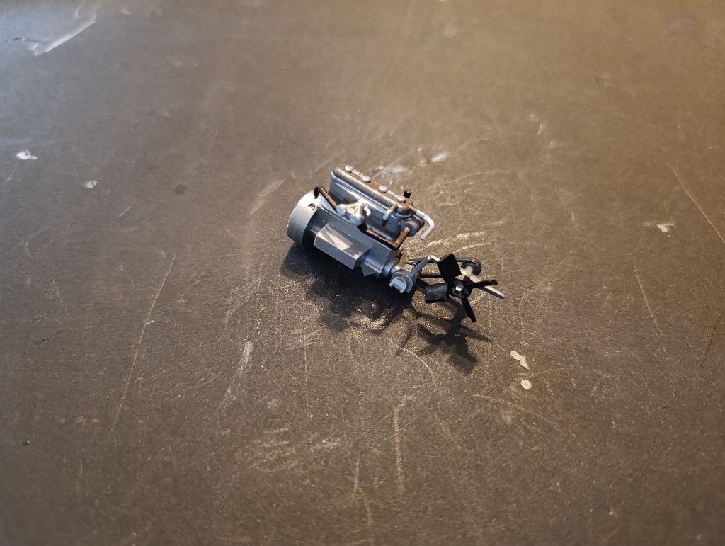 Nun ging es also an die Details, so haben ich nun den Motor bemalt. Etwas kompliziert da es keine wirklich guten Vorbildfotos gibt, also habe ich nach Gefühl gehandelt.