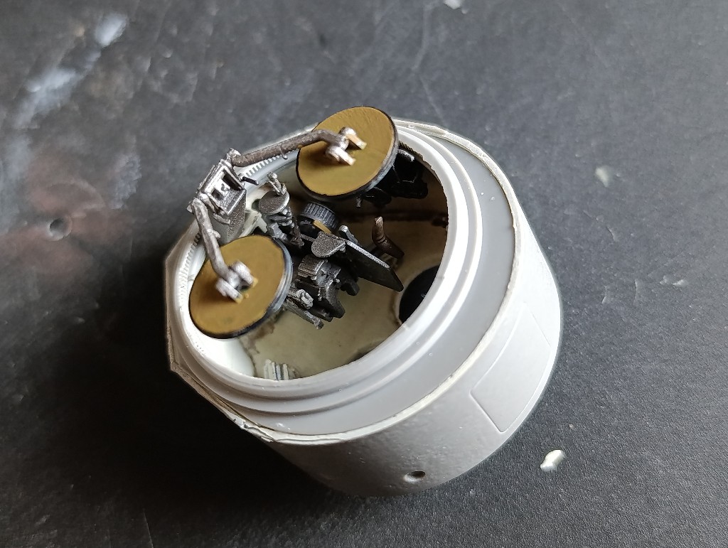 Soweit so gut. Hier fehlt eigentlich nur noch Feuerlöscher und Funkgerät, dann widmen wir uns dem Turm. Dann sollte der Innenraum fertig sein (bis auf das Weathering was natürlich auch noch kommt)