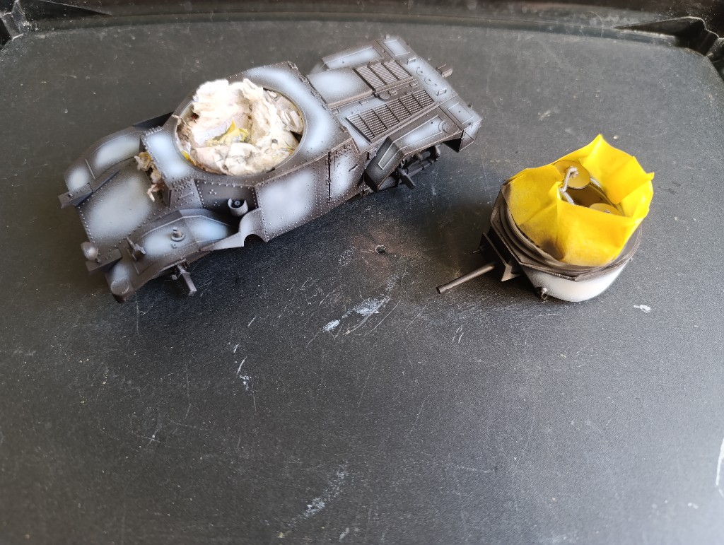 So nun aber ran an dem Speck. Der Panhard gehört zu meinem Stabel der aSchande und würde bereits vor etwa einem Jahr begonnen. Da hatte ich eine Phase gehabt, wo ich dutzende Modelle angefangen habe, aber auf keines so richtig Lust. Ich nenne es Baublockade.