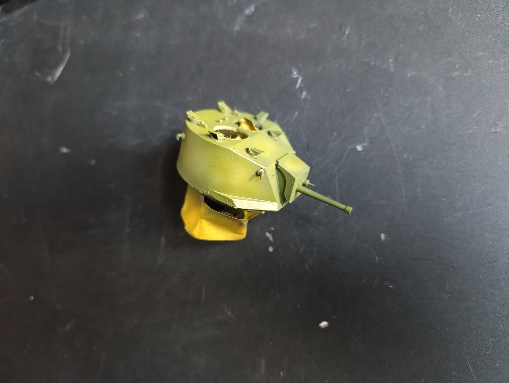 Dann kam der Drehkranz und untere Turmboden zum Einsatz. Hier werde ich auf alle Fälle nochmal Spachteln müssen, da ein paar Lücken entstanden sind.