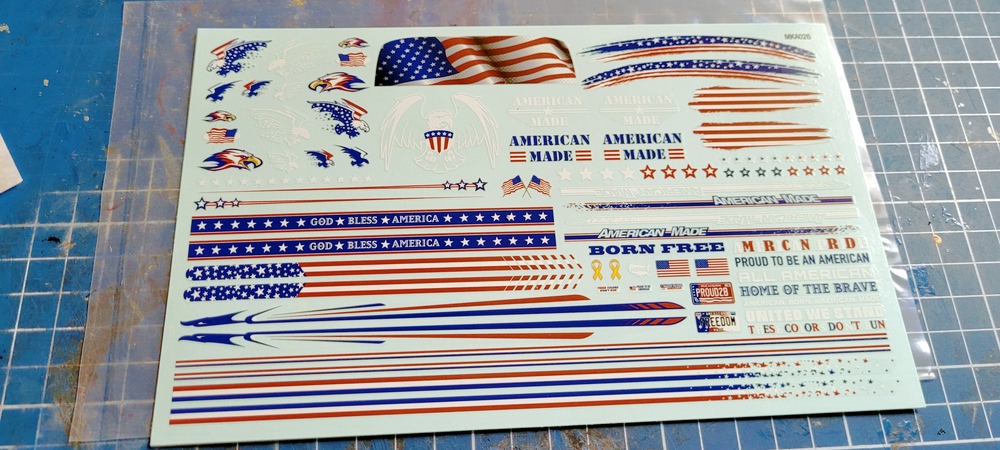 Dazu gab es dann noch ein paar schnick schnak Decals, da ich mir nicht mehr so sicher bin ob die Originale noch funktionieren. Erst mal was in Patriotisch.