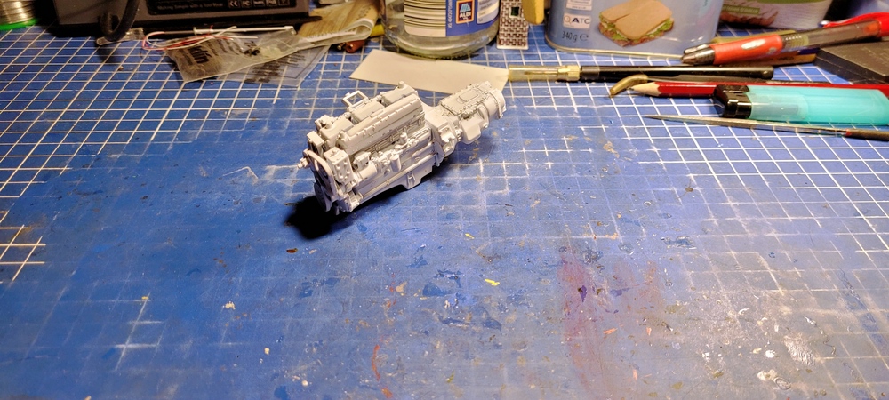 Nun noch ein genauerer Blick auf den vorderen Bereich, leider hatte ich keine ersatz Halterungen, für die Kabine mehr da, aber nach der Grundierung wird man das nicht mehr sehen und noch ein Blick auf die vordere Motorhalterung.