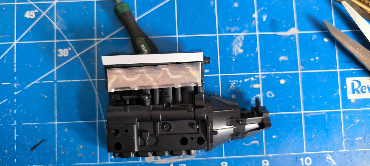 Ich weiß auch nicht wieso man an solch offensichtlichen Stellen solche Fehler macht. Kein Foto aus dem Motorraum ist exact so wie der Aufbau bei dem Hachette Modell. Man kann nur versuchen das zu kaschieren und ein etwas harmonisches Gesamtergebnis zu erzielen.