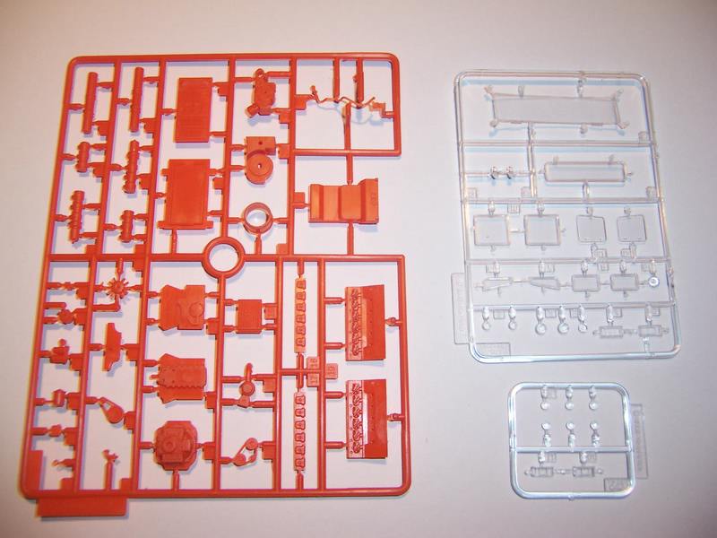 Spritzlinge: 11 + 1 Ätzteilplatine + Ladefläche + Kabine + 22 Reifen + 1 Beutel mit Achsen und Federn + 1 Beutel mit Schläuchen und Kabeln