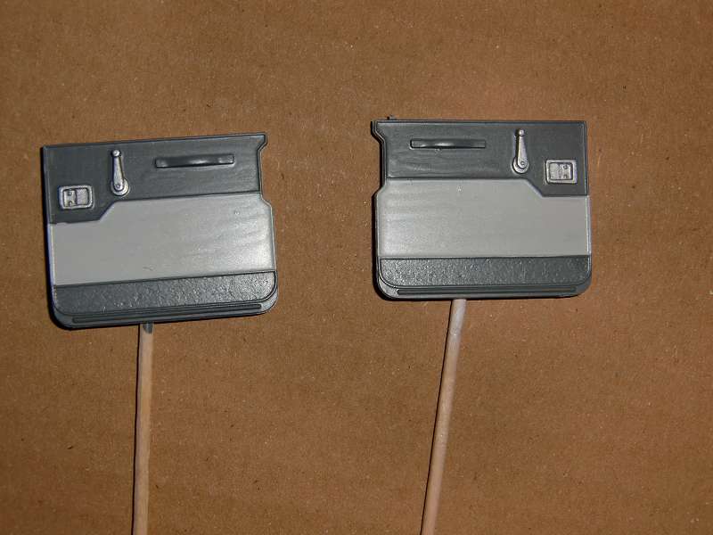 Mit dem beiliegenden Pinsel lässt sich das ganze gut auf die Teile aufbringen. Den "Rost" auf den silbernen Teilen hab ich einfach mit etwas Rostfarbe am Pinsel darübergestrichen.
