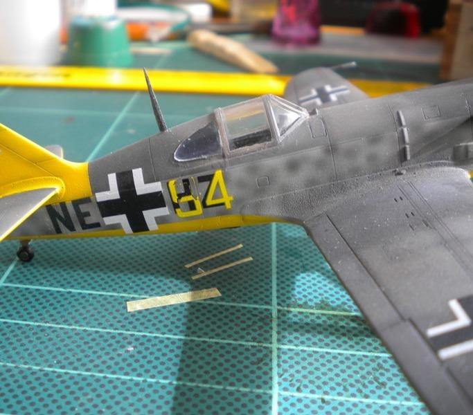 Beim Ankleben des Propellers hatte ich wohl noch ein wenig Sekundenkleber am Daumen und das ist das Ergebnis: ein abgeblättertes Abziehbild,; hier die "gelbe Neun":