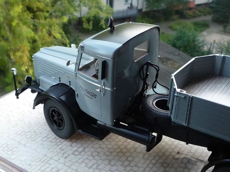 Als Basis hab' ich den bekannten Revell Büssing verwendet. Nur Fahrgestell gekürzt und auf SZM umgebaut. Ausserdem das "Schwalbennest" entfernt, den der Oskar fuhr nur Nahverkehr und benötigte keine Schlafkabine. Der Auflieger entstand unter zuhilfenahme von zwei Revell Hanomag Anhängern. Und die Hanomag Schlepper sind Fertigmodelle von Wiking. Das werde ich vielleicht mal ändern. Kommt Zeit, kommt Rat. Mal sehen.