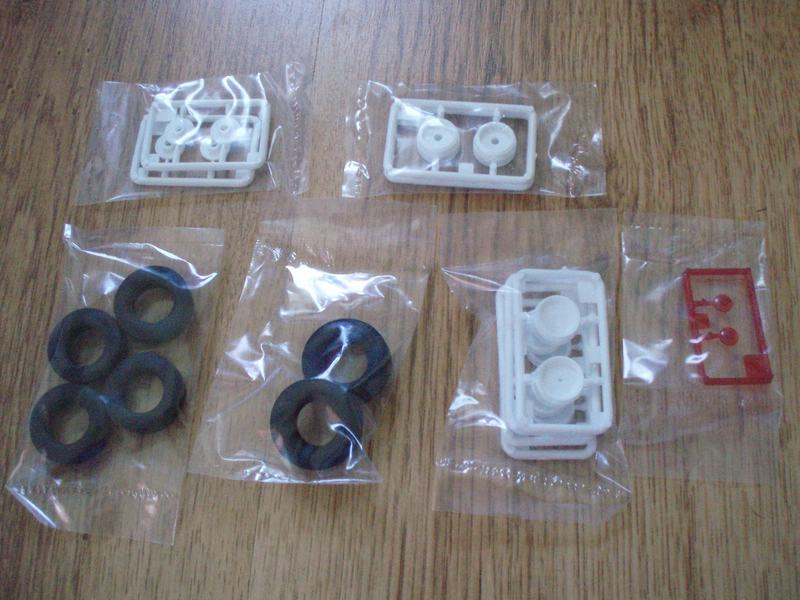 Spritzlinge: 17x Weiß, 1x Karosserie, 1x Unterboden, 3x Chrom, 1x Klarsicht, 1x Klar Rot, 6 Gummireifen