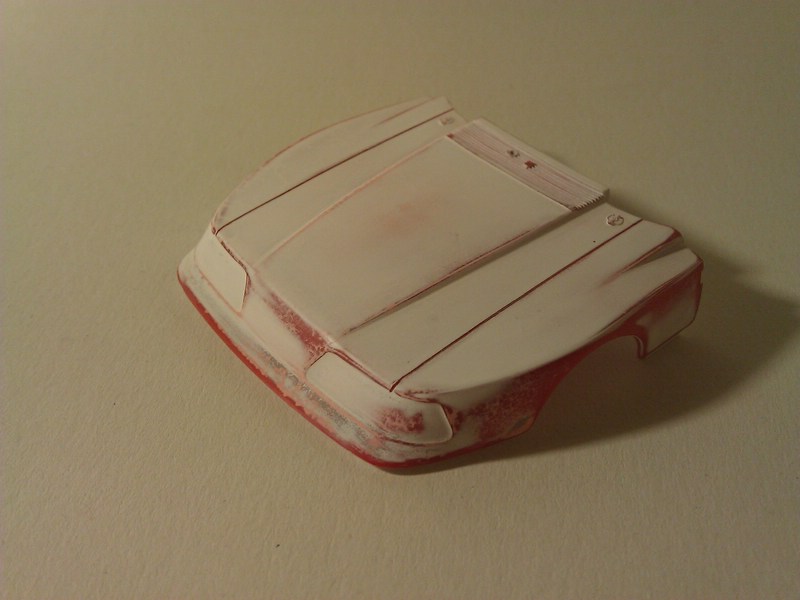 Bloß mit den Decals... Wenn man es vorsichtig macht, soll der Tamiya TS-13-Lack ja auch mit den Decals verträglich sein, und beim letzten Auto hatte ich auch keine Probleme... aber das waren nur kleine Embleme, die als Decals ausgeführt waren, und keine großflächigen Beschriftungen und Werbungen. Da hab ich grad echt Bauchschmerzen