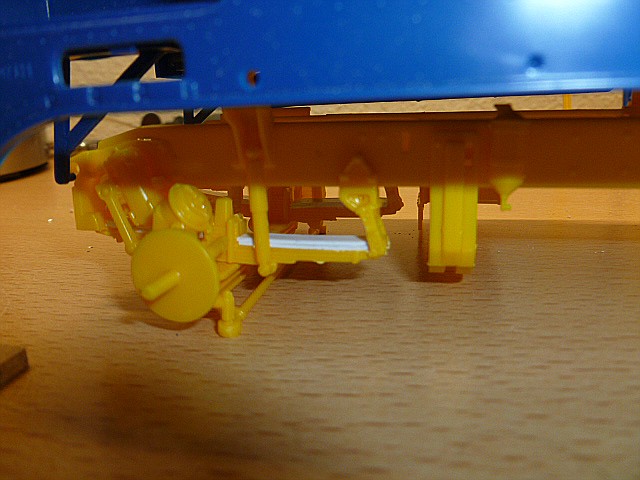 Moin Berni,ich würd nichts irgendwo abschneiden bevor man ausprobiert hat wie das mit trailer dahinter aussieht...wenns dann eventuell zu lang wirkt kannst immer noch nacharbeiten.Mein Vater sagte immer "lieber 3mal gemessen oder ausprobiert als zuschnell abgetrennt"...der mann war autoschlosser,konstrukteur,schweisser usw....ein wenig von Seinem wissen hab ich mitgekriegt.Die vorderachse zu verstärken ergibt für mich KEINEN technichen zweck,soviel schwerer dürfte der truck dadurch nicht werden,der grösste teil vom gesamtgewicht des sleepers liegt sowieso auf den hinterachsen.