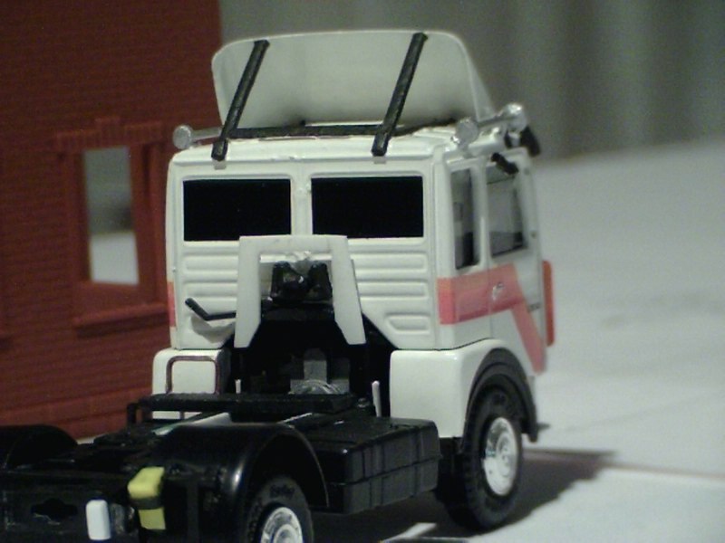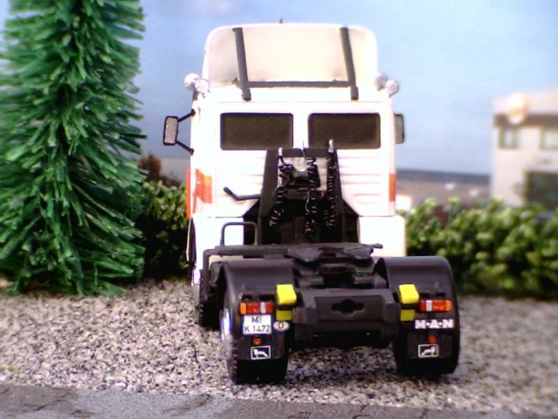 Hab heute am MAN die Gummischürzen mit Seitenblinker angebracht, und die hinteren Fenster, wie beim Ori, in schwarz abgesetzt.