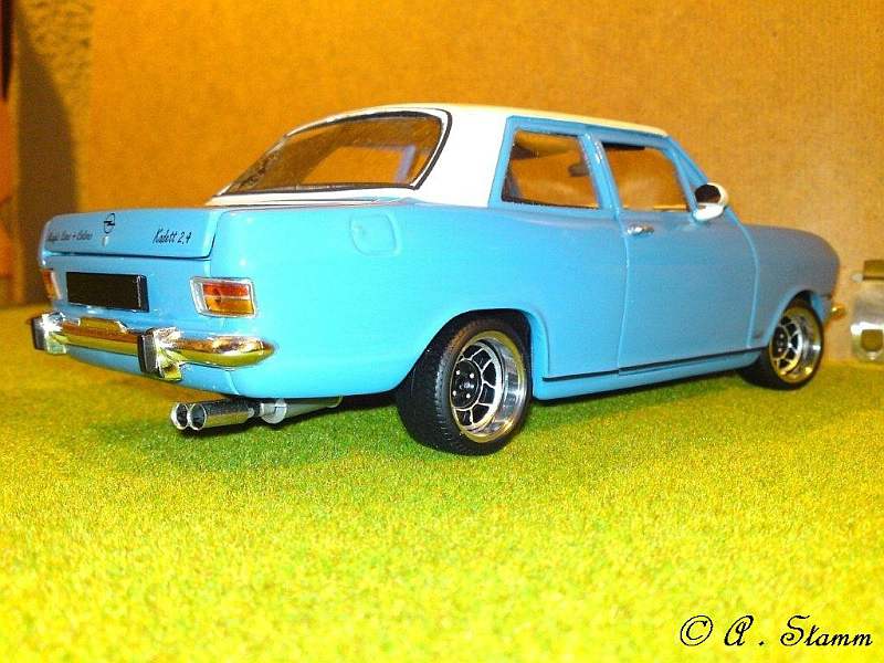 der Kadett ist echt klasse geworden! Die Farbkombi ist nett anzusehen. Der Motor ist eine Granate. Die Felgen find ich passend, aber die Reifen irgendwie nicht. Für meinen Geschmack sind die Niederquerschnittreifen zu modern, ich bin bekennender Ballonreifenfan