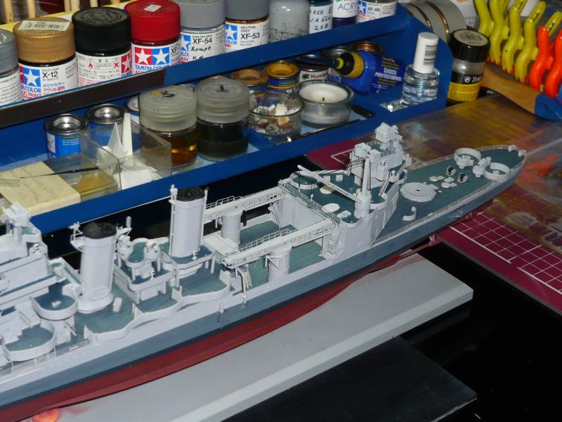 bis ich sie fand,war ich etwas stutzig geworden weil Morskie 2 Ausführungen Skiziert hat , einmal mit schild und einmal ohne Schild also Buch raus und Gucken da ist ein gutes bild von den hinteren Bofors dabei und siehe da die waren ohne Schild da sie ja in der Schutzwanne standen ,naja hab dann auch schluss gemacht weil Spät war und die Augen Schwer wurden