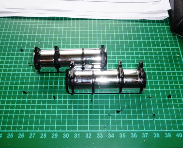 Weiter gemacht habe ich mit den Halterungen wo das ganze dann am rahmen befestigt wird, diese habe ich nach Anleitung zusammengebaut schwarz lackiert und befestigt an den Seitenteilen.