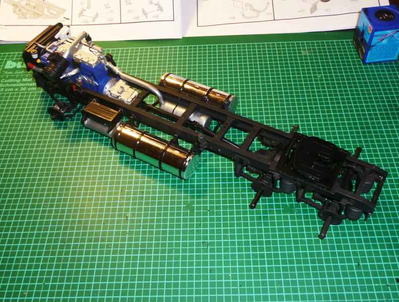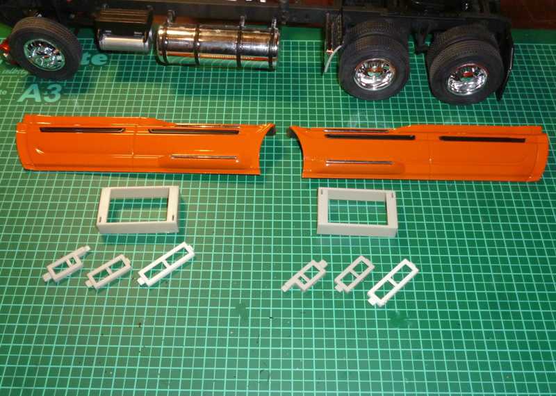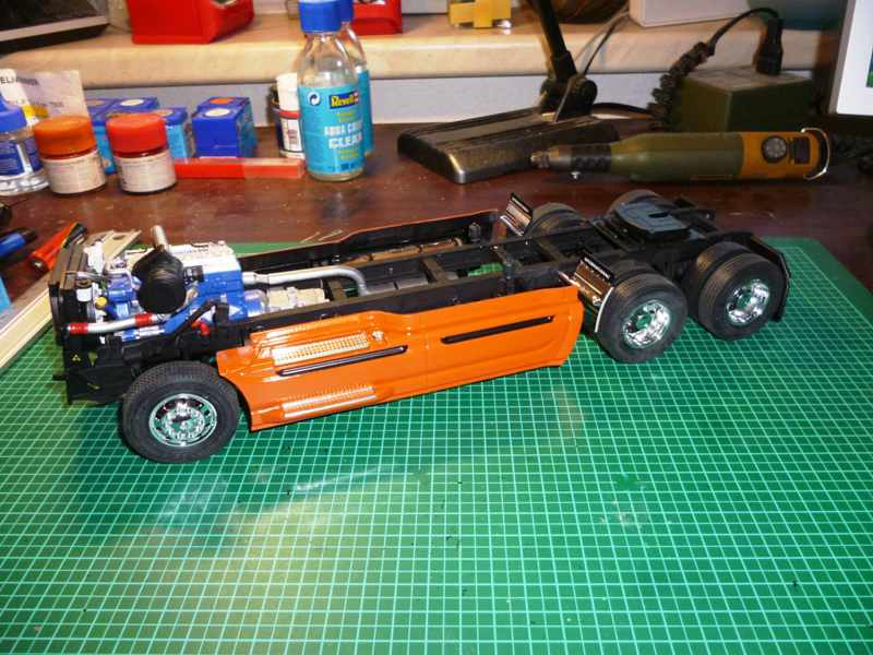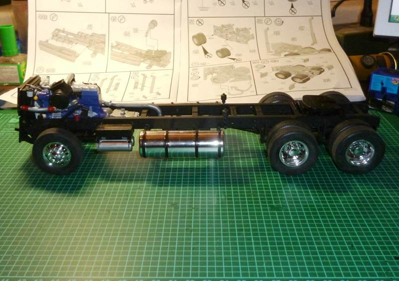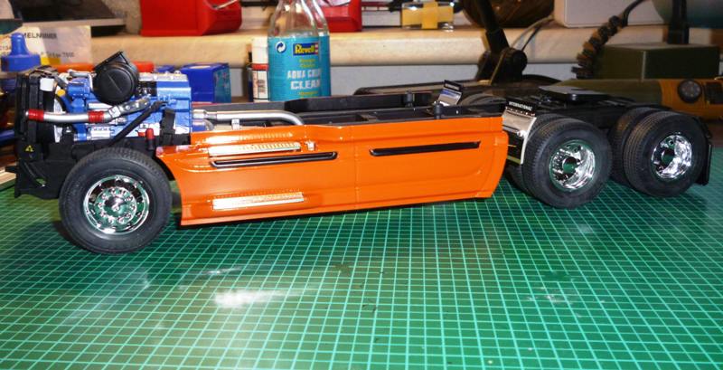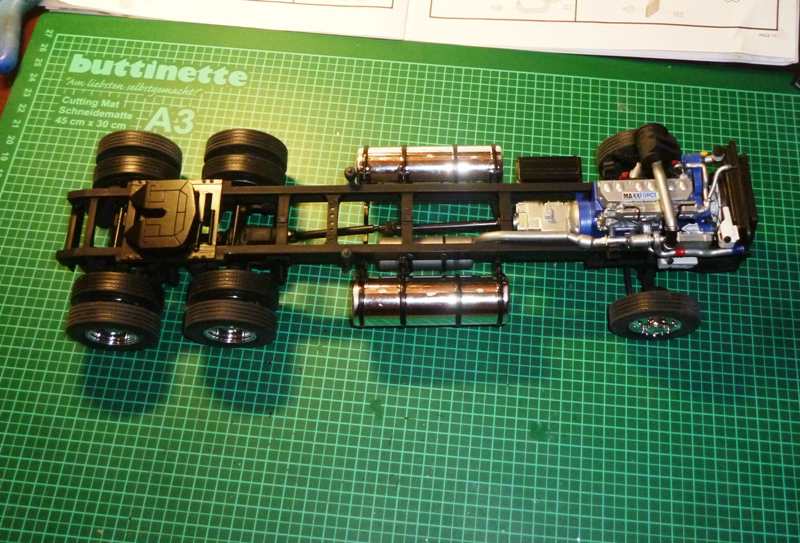 Weitergemacht habe ich mit den Schmutzfängern des trucks 2 stück liegen in Chrom bei diese kommen vor der ersten Hinterachse, und 2 stück hinter der 2ten Hinterachse.