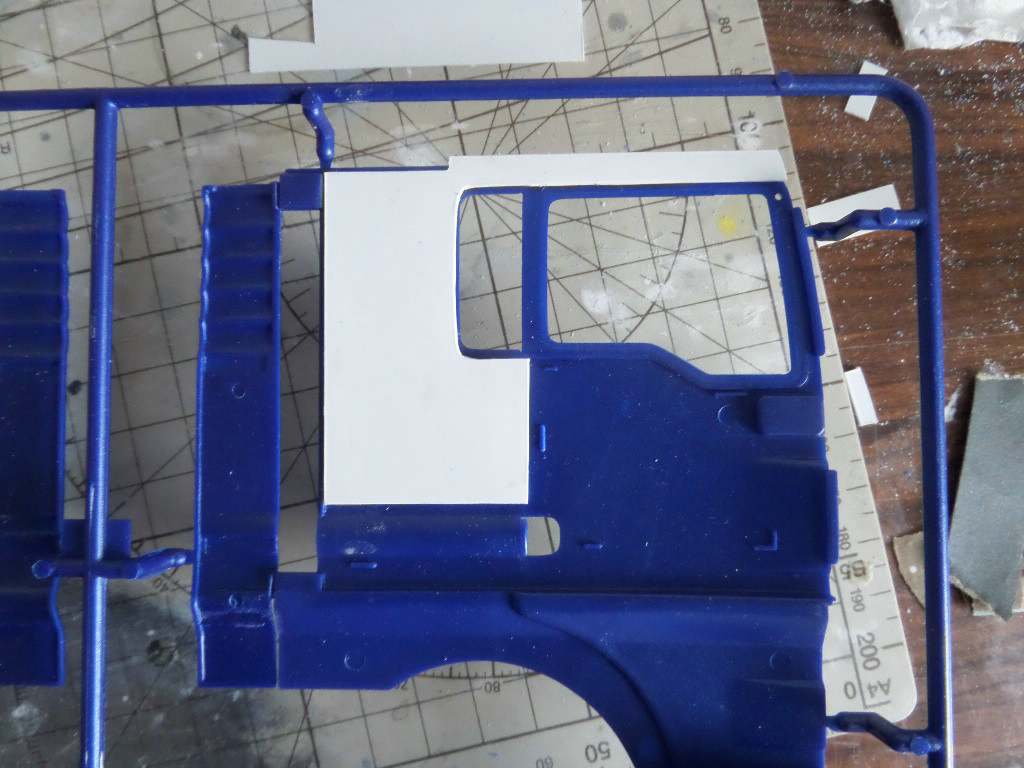 Derzeit bin ich dabei, das Fahrerhaus innen zu verspachteln und mit einer Innenverkleidung auszustatten, die ich aus Evergreenplatten herstelle. Bilder hierzu gibts demnächst, das ganze hält mich etwas auf Trab, da ich es sauber machen will und mir da erst Gedanken dazu mache, wie es am Einfachsten und doch überzeugensten geht.