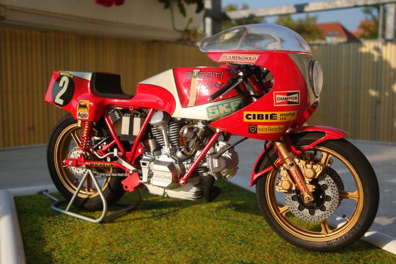 zu guter letzt zeige ich euch noch meine Ducati 900 N.C.R. die ich dank unserem Plastinator nicht mit japanischer Bauanleitung zu bauen brauchte. Ebenfalls letzten Oktober bei unserer Ausstellung am Start reichte es für den 3. Rang der Rennfahrzeuge.