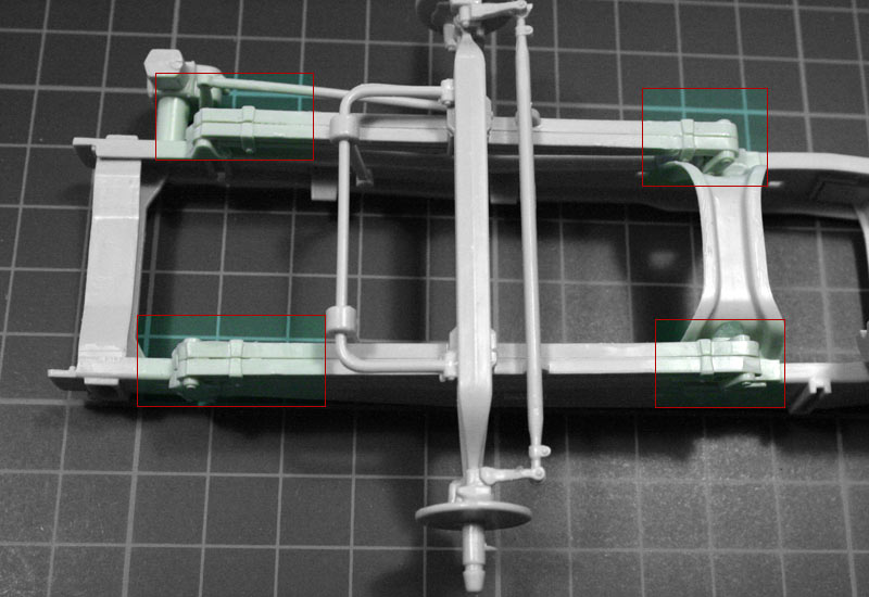 4. Diese Nähte wie beim Motor kann man relativ leicht verschleifen. Oft sind die schön plan, ab und zu ist aber auch etwas Spachtel Sinnvoll. Zum Beispiel die Federn oder die Hinterachse. Wenn du die Federn schleift bis die schön plan sind, sind die insgesamt zu dünn da die Teile leicht konisch sind. Die sollte man spachteln, sei es auch nur aus Optikgründen.