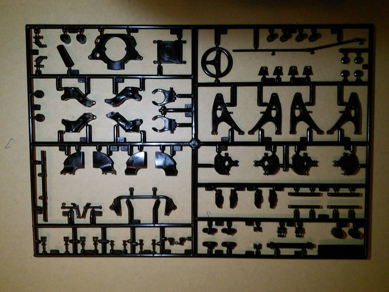 Spritzlinge: 1x klar, 1x chrom, 4x schwarz, 1x Gummi/Vinyl, 1x Unterboden in metallic-grau, 1x Cockpit in metallic-grau, 3x metallic-grau, 2x dunkelblau (insgesamt 14)