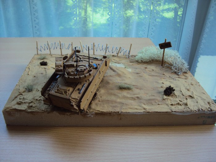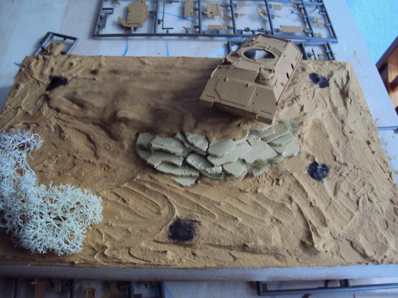 In einer Wüste gibts nicht viel zu sehen, darum wird nicht mehr viel dazu kommen können. Der Panzer kommt dazu und etwas Vegetation... und noch eine kleine Sache vielleicht.