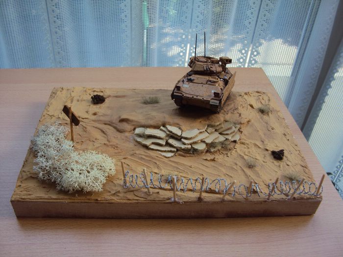 Ich plane ein kleine Wüsten-Diorama 1:72 mit einem M 2 A2 Bradley Panzer. Wie bei