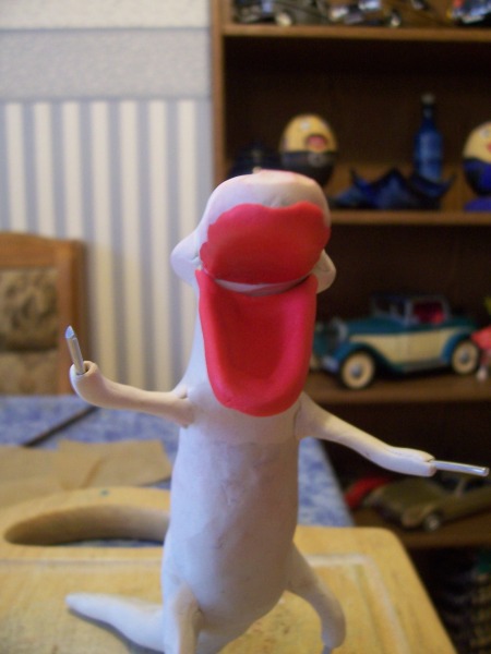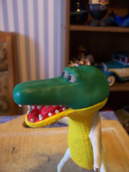 Die Figur wird ein vermenschlichtes Krokodil werden, mit diversen Accessoirs, die der kretischen Tracht entlehnt sind,