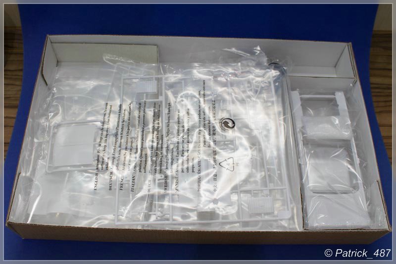 Spritzlinge: 21 Stück, 16x weiß, 3x chrome, 2x klar, 1x Bodenplatte, 1x Karosserie, 8 Reifen