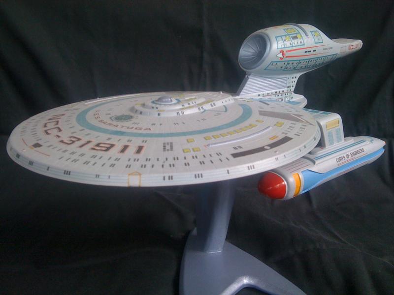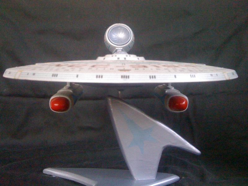 Oh danke, freut mich..... Ursprünglich war das mal eine schlecht gebaute Enterprise C, die ich fertig gebaut auf ebay ersteigert habe. Da ich selbst eh schon eine EP-C habe, wusste ich nicht so recht was ich damit machen soll. Auf ebay sah das Ding besser aus als es tatsächlich war. Und dann kam mir die Idee zum Kitbashen.... Das Modell wurde von Innen mit ziemlich viel Sheet Styrene verstärkt. Vor allem um einen Aufnahmeschacht für den Inbusschlüssel zu konstruieren und um die Untertasse zu verstärken....Es wurden auch 2 Teile von Ständern des Revell Maquisraiders verwendet, die ich noch übrig hatte. In die Untertasse habe ich mit der Laubsäge einen dreieckigen Spalt gesägt damit das Verbindungsstück des Sekundärrumpfes hineinpasst.....Ach ja und ein bischen gespachtelt wurde natürlich auch... Aber es ist trotzdem relativ einfach zu bauender Kitbash. Vielleicht bau ich das Ding nochmal in Weiss mit Aztekpattern....hmm mal sehen....