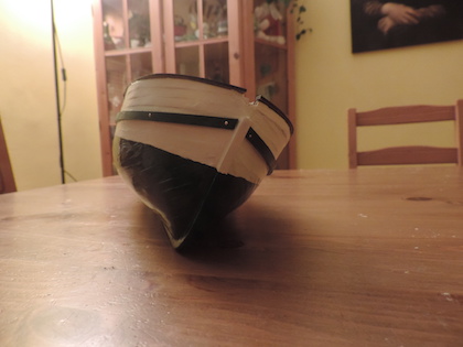 Der Eierkarton war eigentlich nur ein Provisorium, weil ich bei der Lackierung etwas zum ablegen brauchte, dass mir das Deck nicht so zerkratzt. Der Rumpf musste ja kieloben irgendwie abgelegt werden. Inzwischen ist das aber tatsächlich ganz angenehm, weil durch die Form des Kartons der Rumpf fast in jedem Winkel hält. ^^