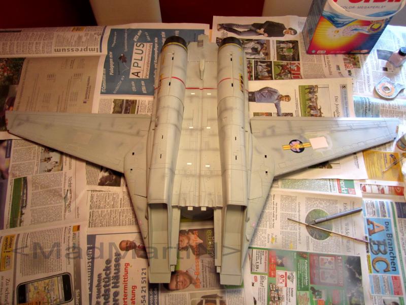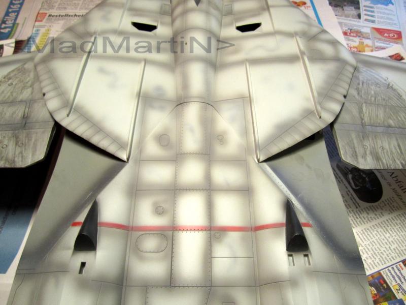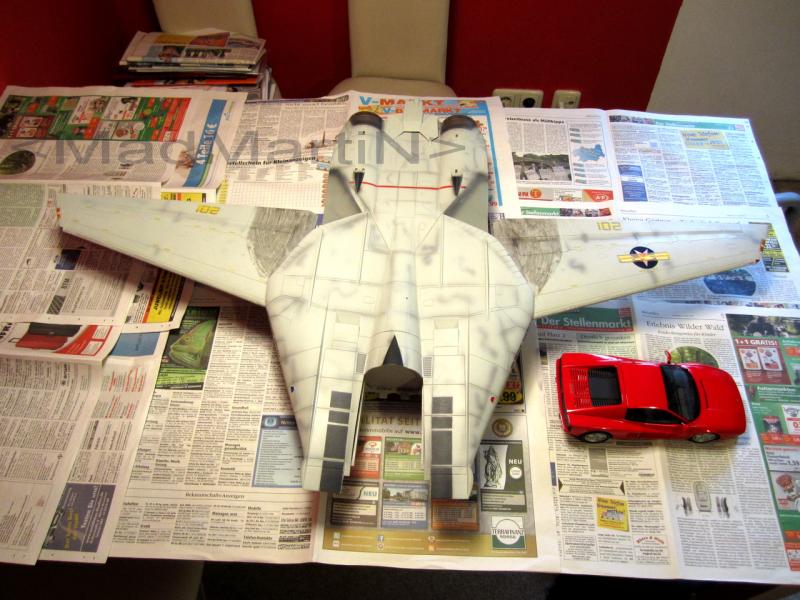Als großer Tomcat-Fan konnte ich das größte Modell meines Lieblings-Flugzeuges einfach nicht so lassen, wie es war. Auch wenn ich zum Glück keine "Spotted Cat" erwischt hatte beim Kauf, war die Lackierung und stümperhafte "Alterung" ab Werk optisch einfach fürchterlich...
