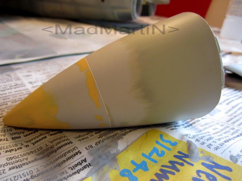 Die Nase musste ordentlich verschliffen und verspachtelt werden (der Spalt zwischen den beiden Teilen war fürchterlich, außerdem gab es eine deutliche Stufe):
