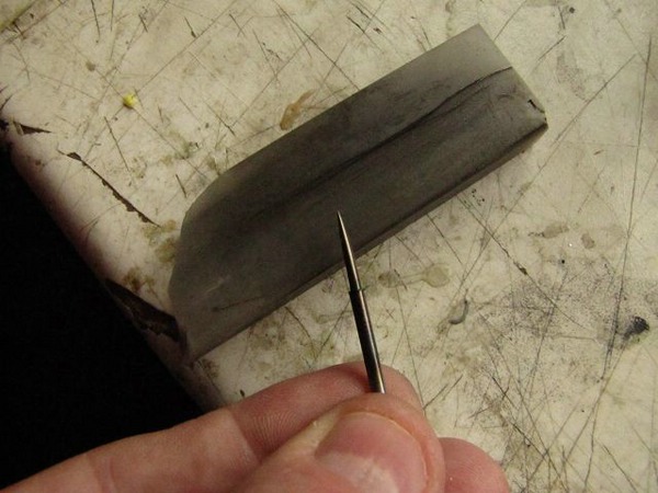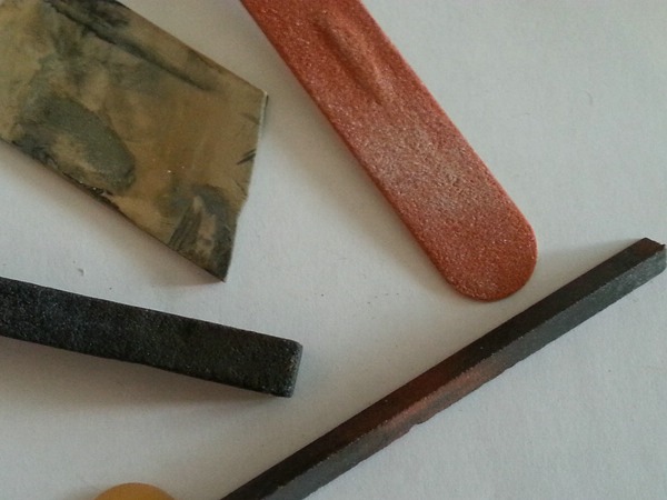 Zum einen unterschiedliche Schleifmittel: Schleifstein, Schleifplatte, feines Sandpapier...... zum anderen: Nähnadeln, Nähmaschinennadel, gehärteten Nagel oder harten Stahldraht, oder Schnittnadeln aus dem Werkzeugmacher-Bereich.