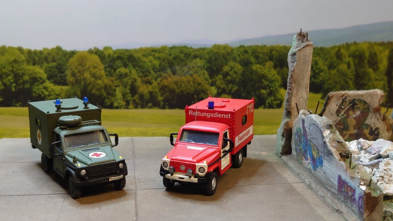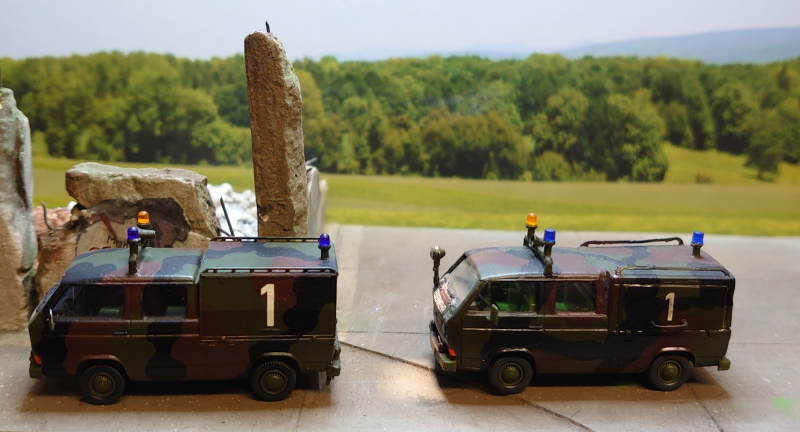 Hier sind verschieden ELW´s auf MB G-Klasse Basis, die Grundmodelle stammen von Wiking, Herpa und Roco: