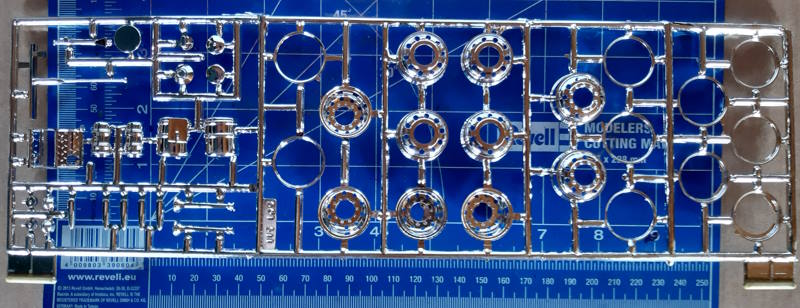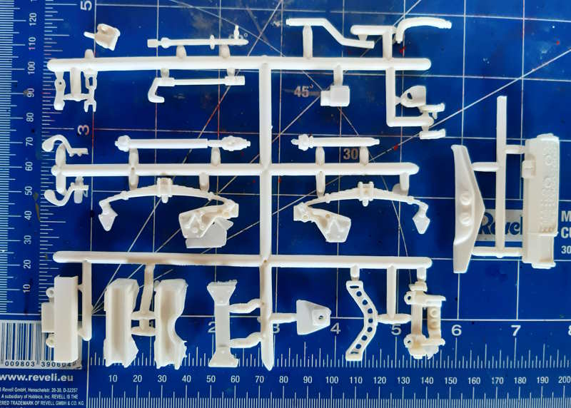 Hier gibt es den alten Bausatz von AMT/ERTL des Midnight Express Peterbilt zu sehen. Die Qualität dem Alter entsprechend. Teilweise gibt es schöne Details, wie z.B. die raue Oberfläche des Motorblocks und Getriebe. Chromteile sind in Ordnung und die Klarsichtteile kommen in rot und gelb. Die Reifen sind recht hart, mit Gravur bzw. Aufdruck. Und dann sind da noch die Decals für die Midnight Express Variante. Die sind zwar hier nicht mehr in Topform aber sie sehen nicht schlecht aus. Man kriegt sie verarbeitet, denke ich.