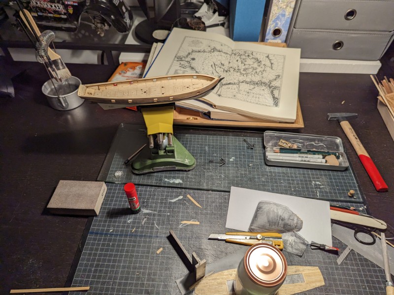 Ich glaube für 70 Öre hätte es bestimmt auch schon einen gebrauchten Bausatz gegeben mit Holzleisten und Beschlagteilen und einem begonnenen Rumpf inklusive originaler Schachtel und allem.