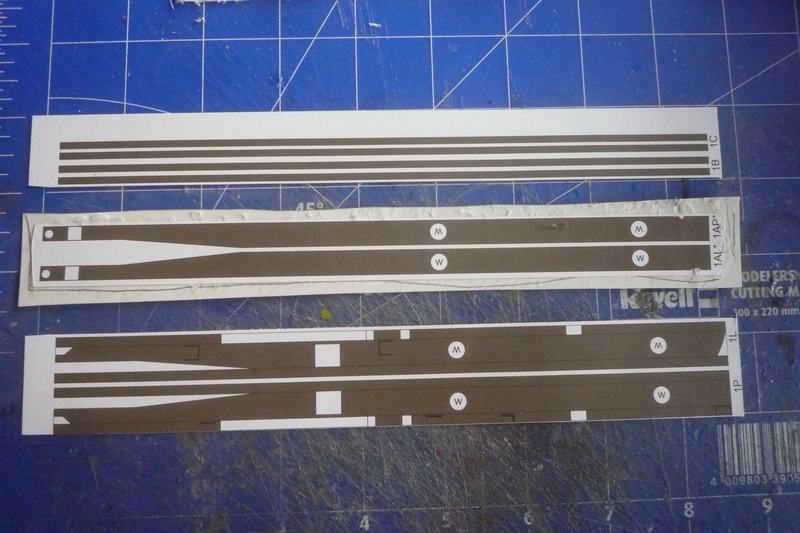 Beginnen soll man den Bau nach der Zeichnung 1, und das habe ich dann auch gemacht. Und da stand am Anfang der Rahmen wofür als erstes die Längsträger fällig waren. Diese bestehen aus den Außenteilen, hier auf dem Bild unten zu sehen, den senkrechten Innenteilen hier in der Mitte und den waagerechten Teilen Innen Oben und Unten: