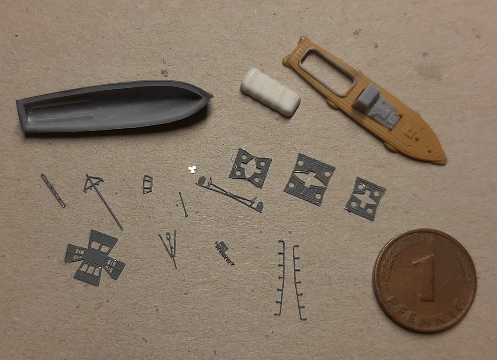Bevor es ernsthaft mit dem eigentlichen Modell losgeht (bin immer noch beim Studium von Bauteilen und Anleitungen) mache ich erstmal die Beibootflotille.