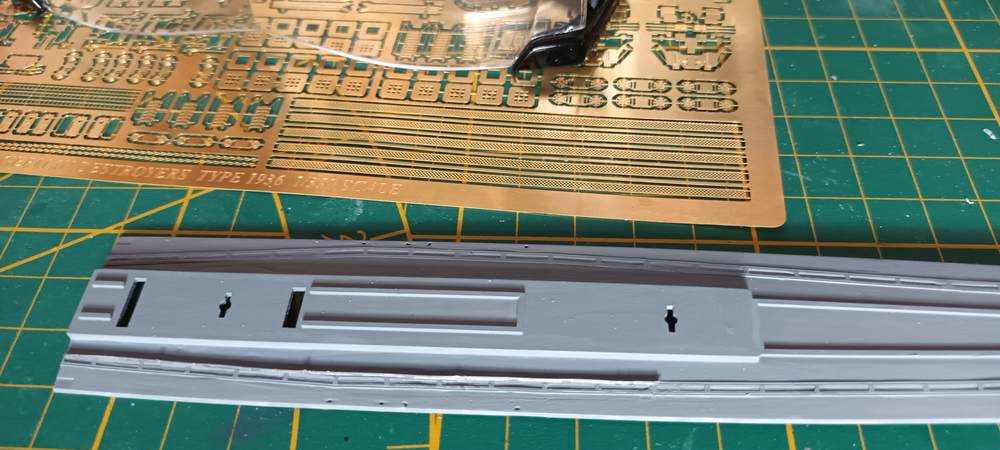 Kein Kriegsschiff auf dieser Welt hat eine komplett glatte Rumpfoberfläche. Ein bisschen rau ist absolut ok[..] Aber ich werde die Oberfläche jetzt nicht auf Hochglanz mit Paste und Co. polieren.[..]