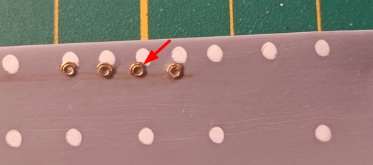 Mein Vorgehen bei diesen Arbeiten (erfordert aber ein Loch in der Bordwand): Von innen einen angespitzten Zahnstocher durch das Loch, von außen das Bullauge aufsetzen. Mit dem Zahnstocher das Bullauge an den Rumpf ziehen und dabei ausrichten. Ganz wenig verdünnten UltraGlue an das Bullauge pinseln, der Kapillareffekt zieht den Kleber zwischen Rumpf und Bullaugen. Dann den Zahnstocher nach innen wegziehen. Fertig![]()